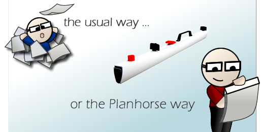 Planhorse UK mobile plan filing systems. Quick and easy storage and retrieval of large format documents.At Planhorse we provide reliable and practical drawing storage and vertical plan filing solutions for A0, B1, A1 and A2 format paper. We have developed products which meet the needs of the most demanding environment from educational institutions to construction site offices. Everything we make is built to last; our A0, B1, A1 and A2 plan clamps come with a 10 year guarantee and our mobile stands and wall racks come with a 5 year guarantee. |